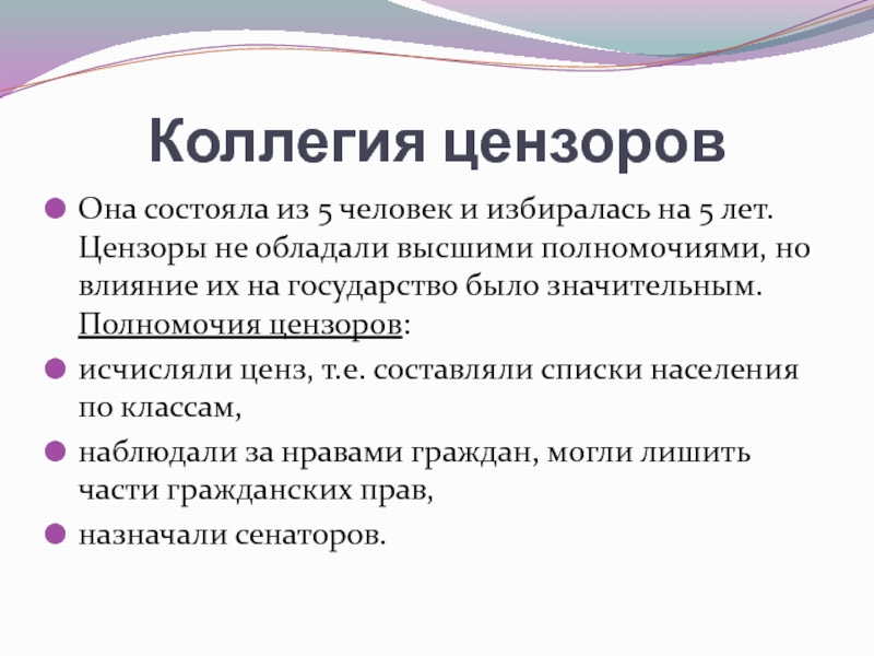 государство было значительным. Полномочия цензоров: