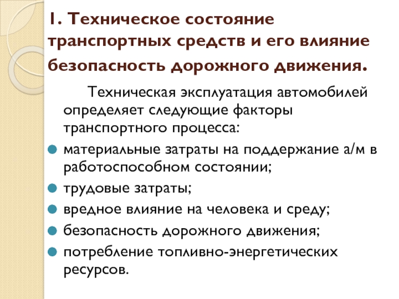 1. Техническое состояние транспортных средств и его влияние на безопасность
