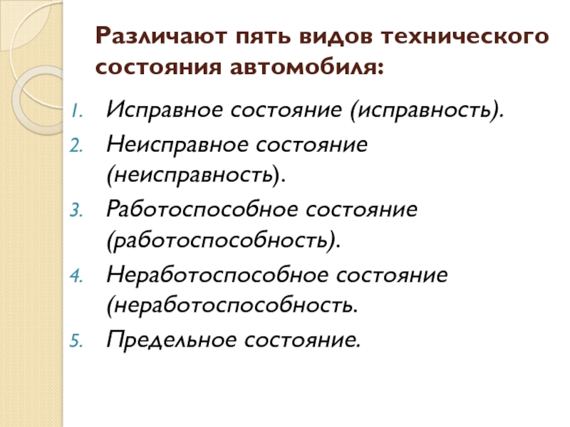 Долговечность автомобиля - это свойство сохранять работоспособность до предельного состояния с необходимыми перерывами для технического обслуживания и ремонта.