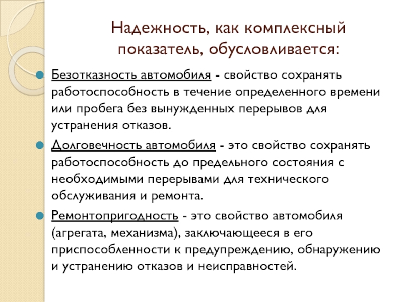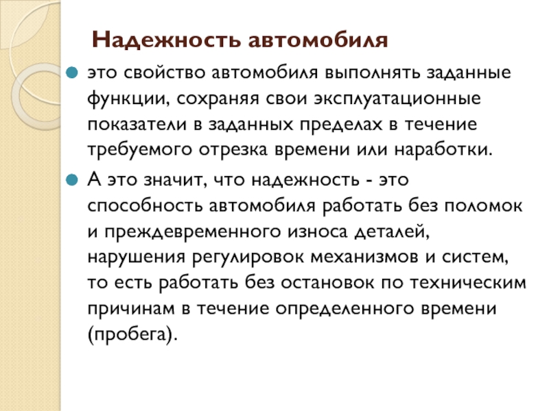 это свойство автомобиля выполнять заданные функции, сохраняя свои