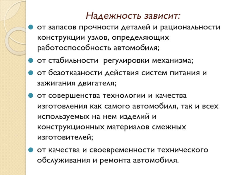 от качества и своевременности технического обслуживания и ремонта автомобиля.