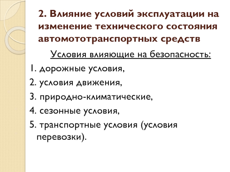 2. Влияние условий эксплуатации на изменение технического состояния автомототранспортных