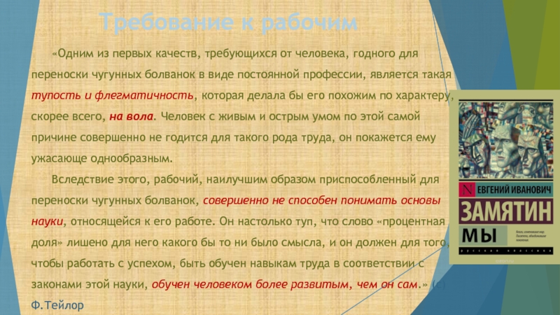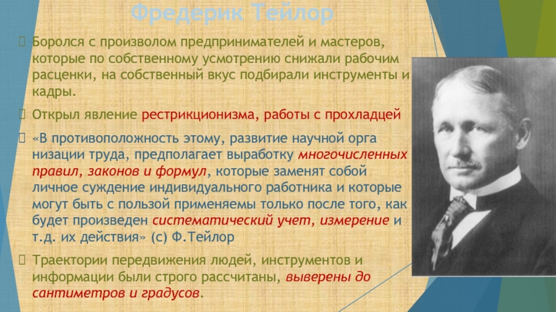 «В последнем столетии только одно философское течение могло конкурировать с учением Тейлора — марксизм. Однако, в конечном счете, Тейлор победил и Маркса». (с) Питер Друкер