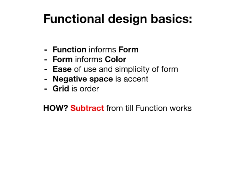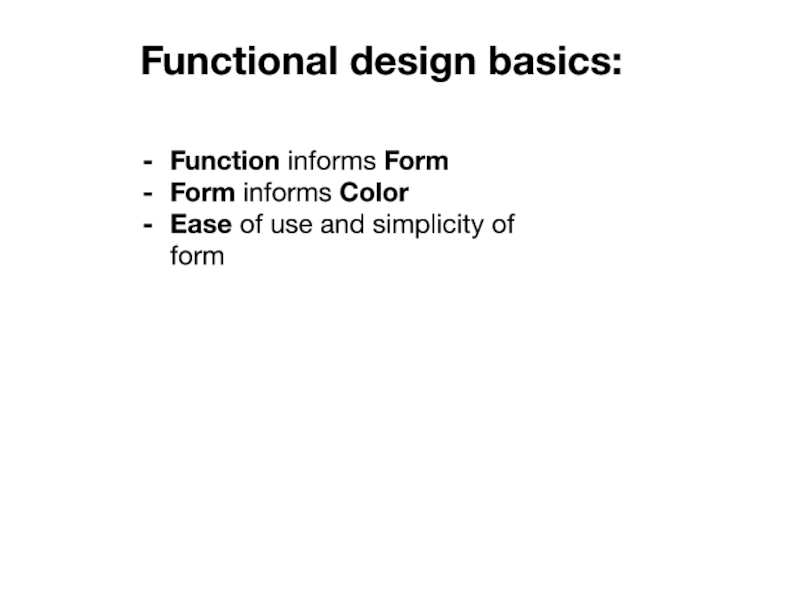Functional design basics:Function informs FormForm informs ColorEase of use and simplicity of form