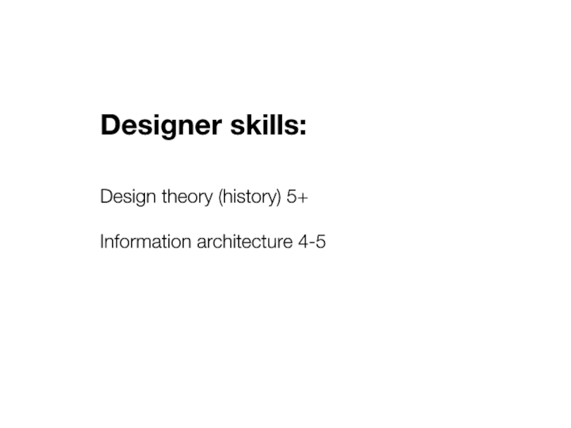 Designer skills:Design theory (history) 5+Information architecture 4-5