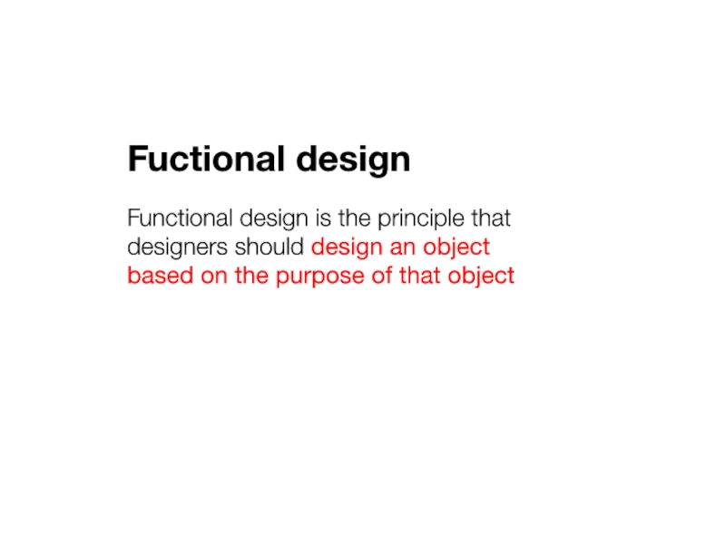 Fuctional designFunctional design is the principle thatdesigners should design an objectbased on the purpose of that object