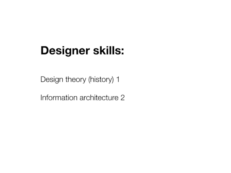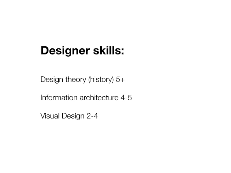 Designer skills:Design theory (history) 1Information architecture 2Visual Design 5+
