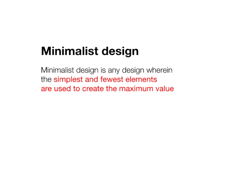 Minimalist designMinimalist design is any design whereinthe simplest and fewest elementsare used to create the maximum value