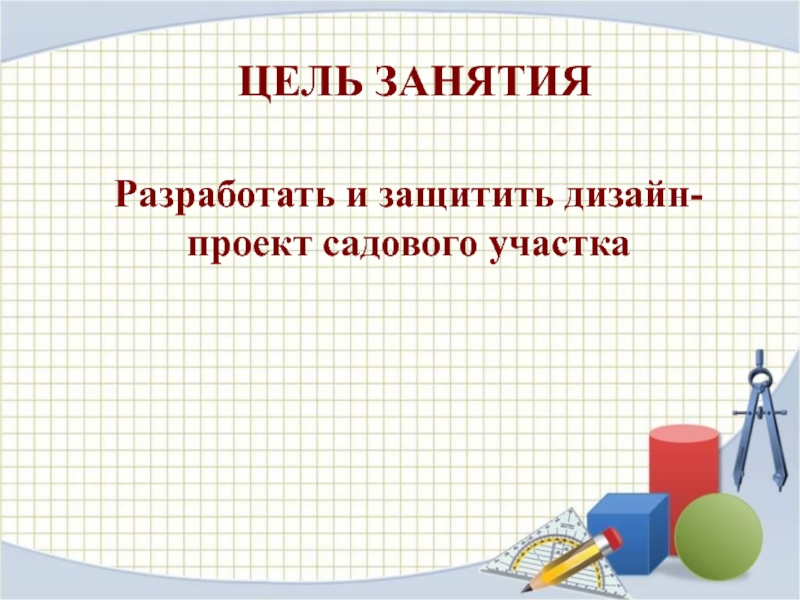 ЦЕЛЬ ЗАНЯТИЯРазработать и защитить дизайн-проект садового участка