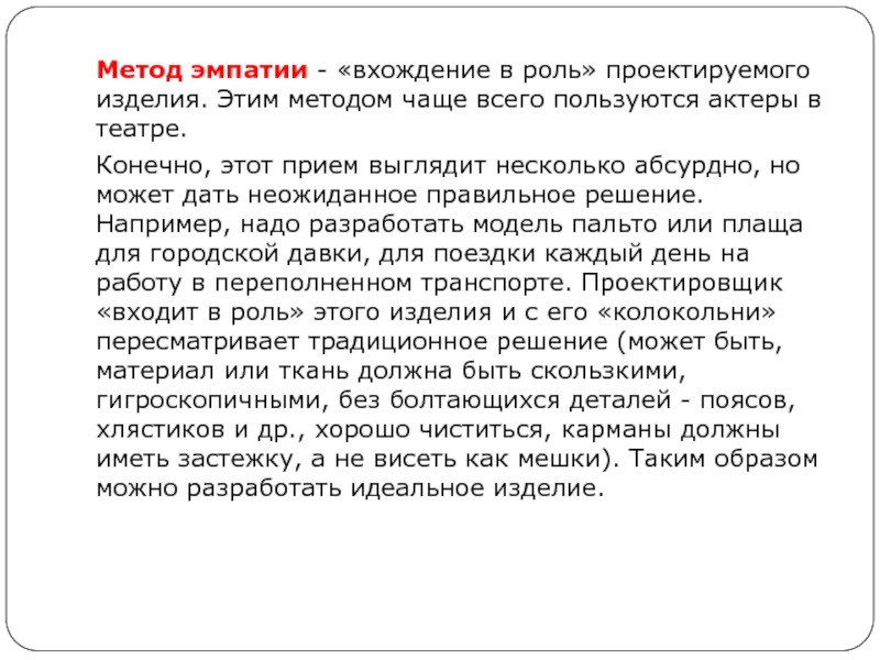 Слайд 44Метод эмпатии - «вхождение в роль» проектируемого изделия. Этим методом