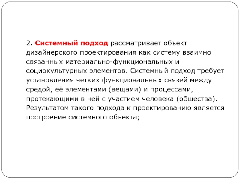 Слайд 132. Системный подход рассматривает объект дизайнерского проектирования как систему взаимно