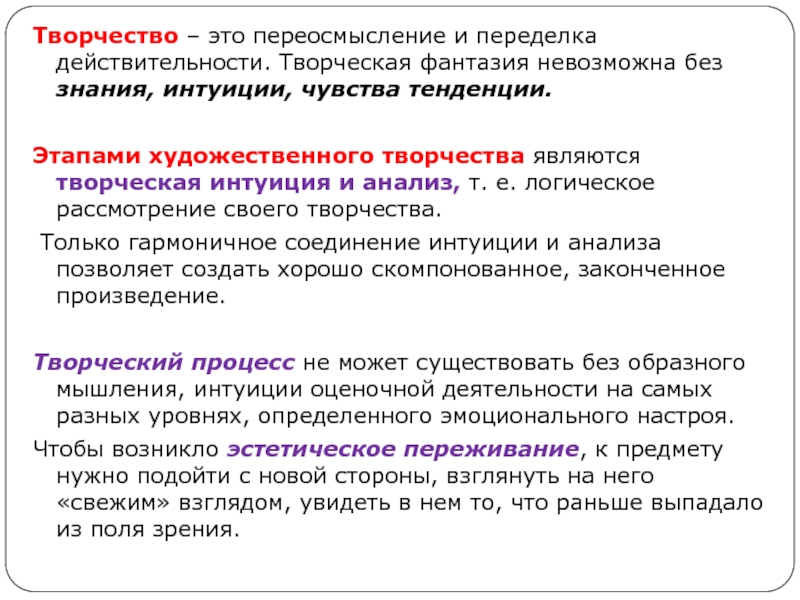 Слайд 7Творчество – это переосмысление и переделка действительности. Творческая фантазия невозможна