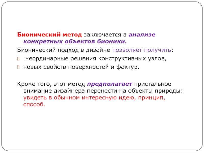 Слайд 37Бионический метод заключается в анализе конкретных объектов бионики.