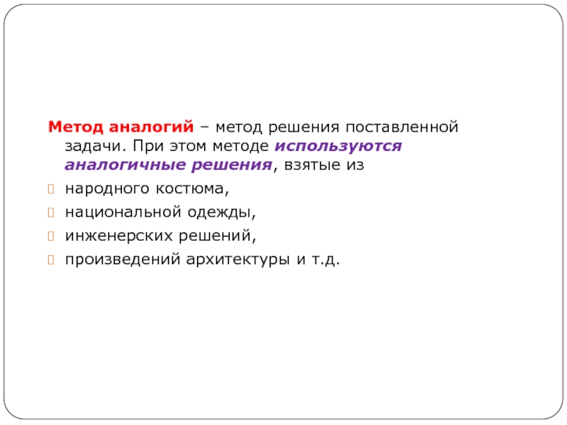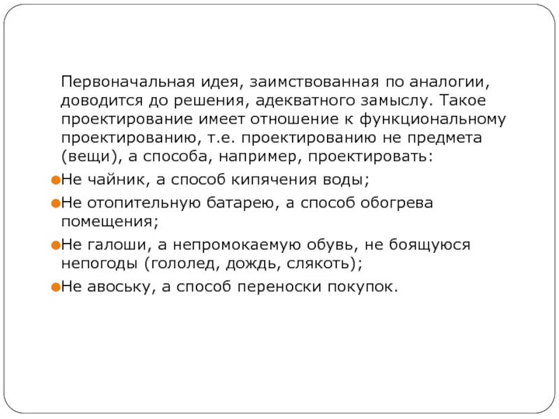 Слайд 34Первоначальная идея, заимствованная по аналогии, доводится до решения, адекватного замыслу.
