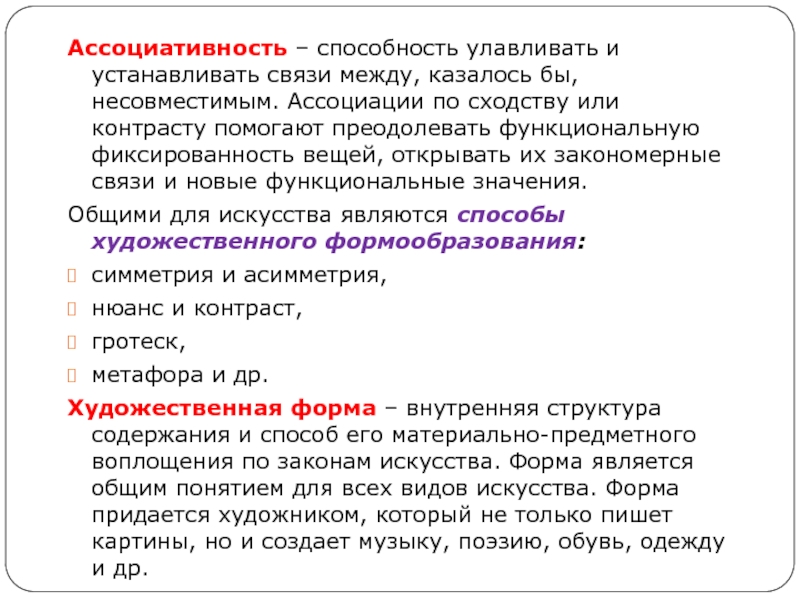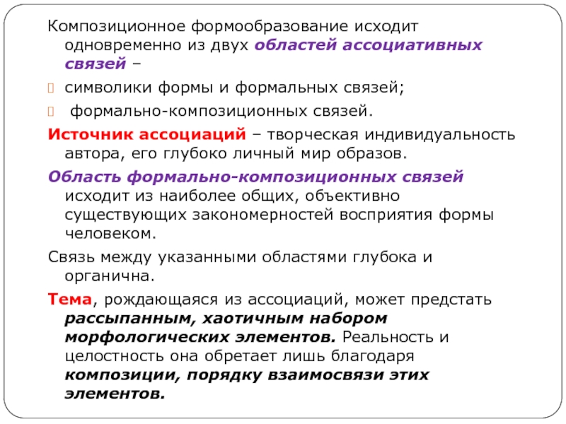 Слайд 6Композиционное формообразование исходит одновременно из двух областей ассоциативных связей –