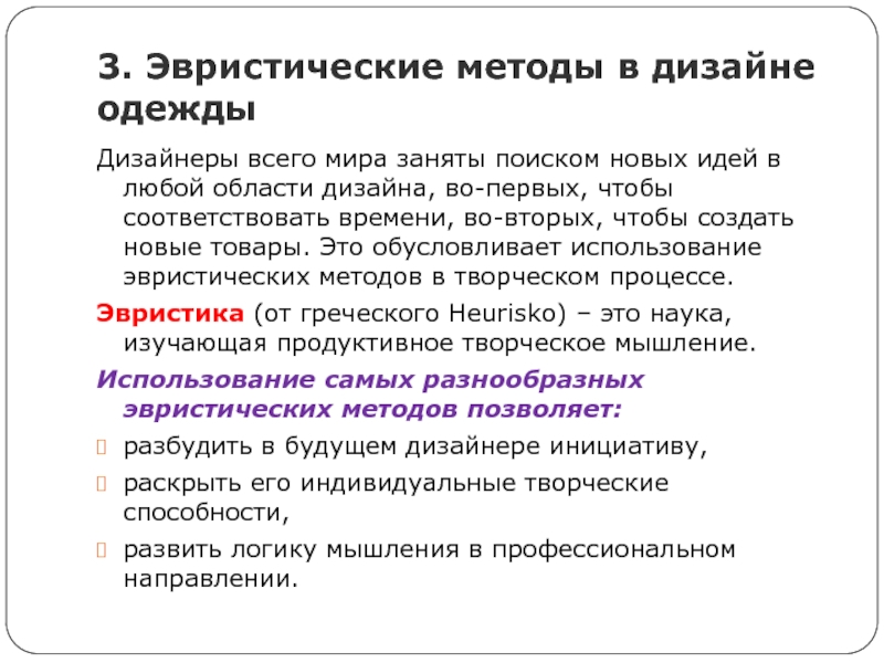 одежды пользовались всегда. Применение этого метода состоит в поиске сходных чужих идей (журналы мод, выставки, показы моделей одежды, посещение магазинов, бутиков, оптовых рынков), в тщательном анализе их достоинств и недостатков. (журналы мод, выставки, показы моделей одежды, посещение магазинов, бутиков, оптовых рынков), в тщательном анализе их достоинств и недостатков.