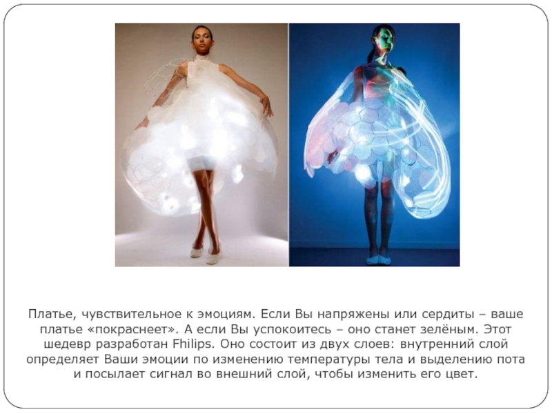 Слайд 48Платье, чувствительное к эмоциям. Если Вы напряжены или сердиты –