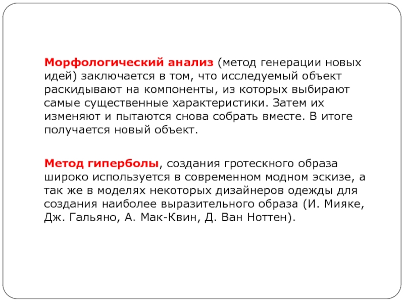 Слайд 41Морфологический анализ (метод генерации новых идей) заключается в том, что