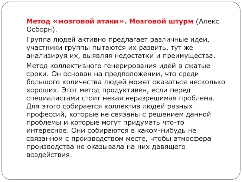 Слайд 45Метод «мозговой атаки». Мозговой штурм (Алекс Осборн).