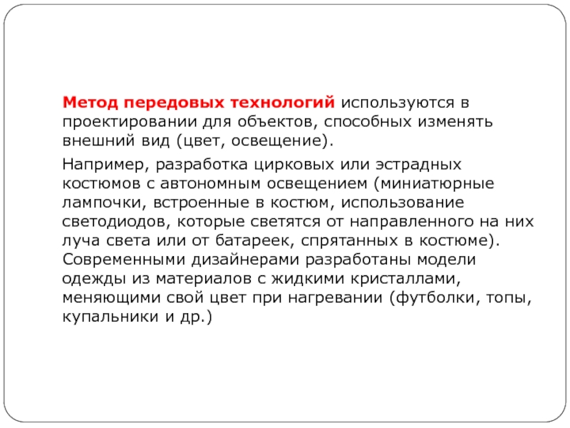 Слайд 47Метод передовых технологий используются в проектировании для объектов, способных изменять