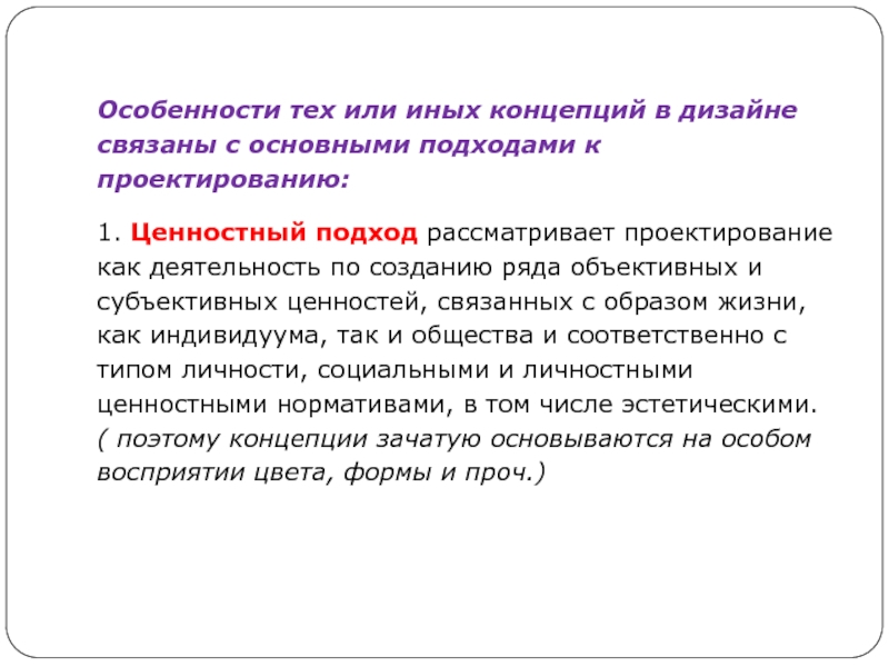1. Ценностный подход рассматривает проектирование как деятельность по