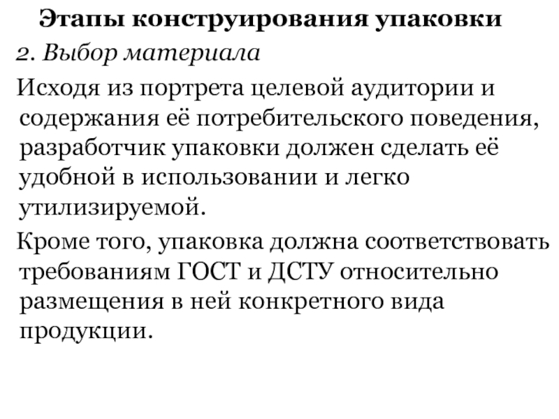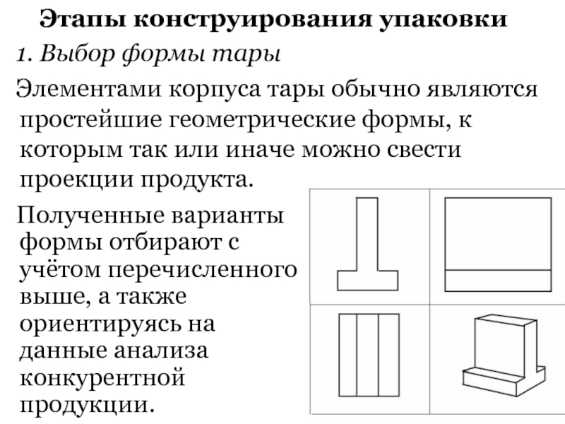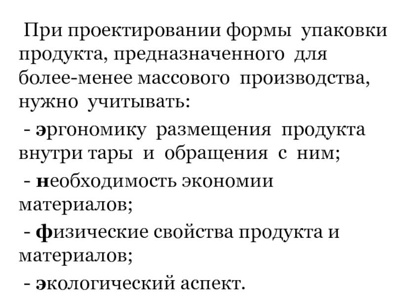 Слайд 5 При проектировании формы упаковки продукта, предназначенного для более-менее массового производства,