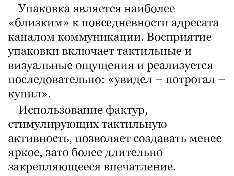 упаковки включает тактильные и визуальные ощущения и реализуется последовательно: «увидел