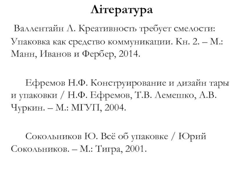 и дизайн тары и упаковки / Н.Ф. Ефремов, Т.В. Лемешко, А.В. Чуркин. – М.: МГУП, 2004.
