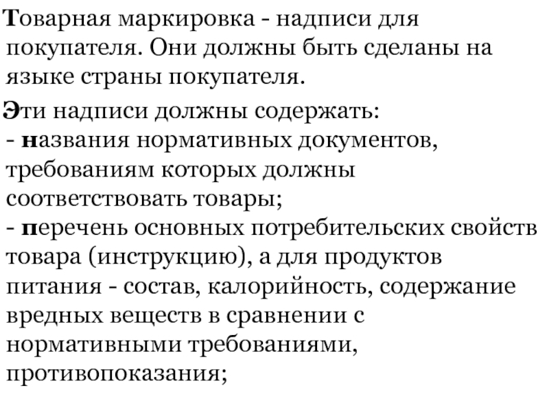 Слайд 13 Товарная маркировка - надписи для покупателя. Они должны быть сделаны