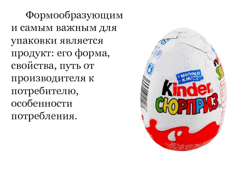 Слайд 7 Формообразующим и самым важным для упаковки является продукт: его форма,