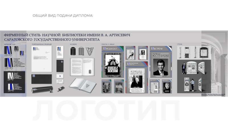 Тема дипломной работы: РАЗРАБОТКА ФИРМЕННОГО СТИЛЯ ДЛЯ НАУЧНОЙ БИБЛИОТЕКИ ИМЕНИ В. А. АРТИСЕВИЧ САРАТОВСКОГО ГОСУДАРСТВЕННОГО УНИВЕРСИТЕТА