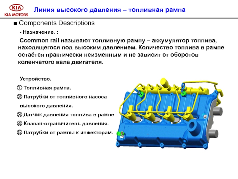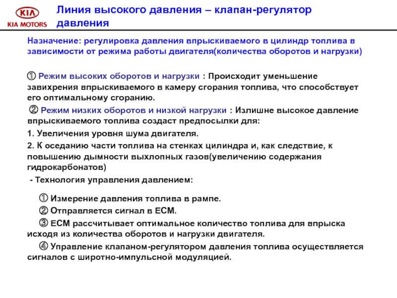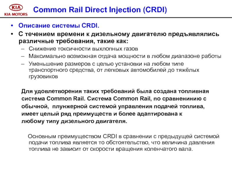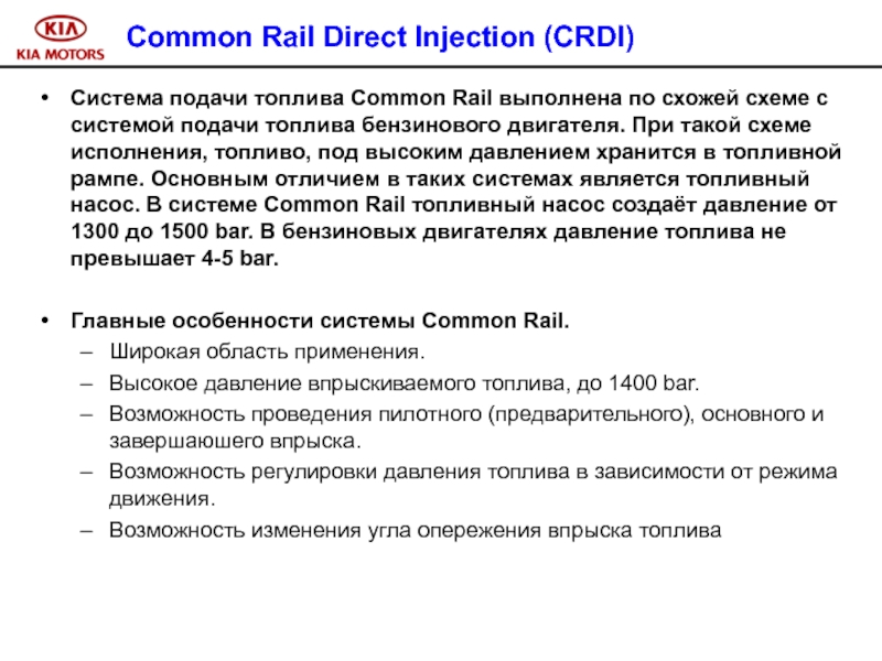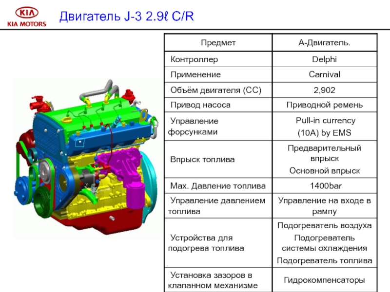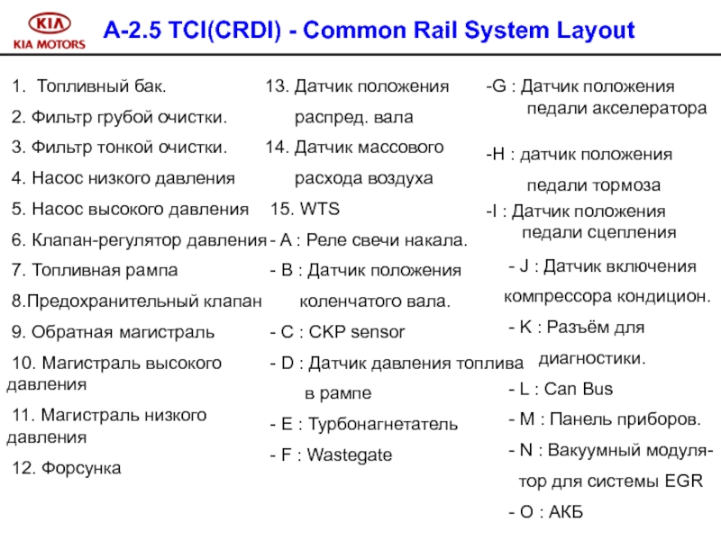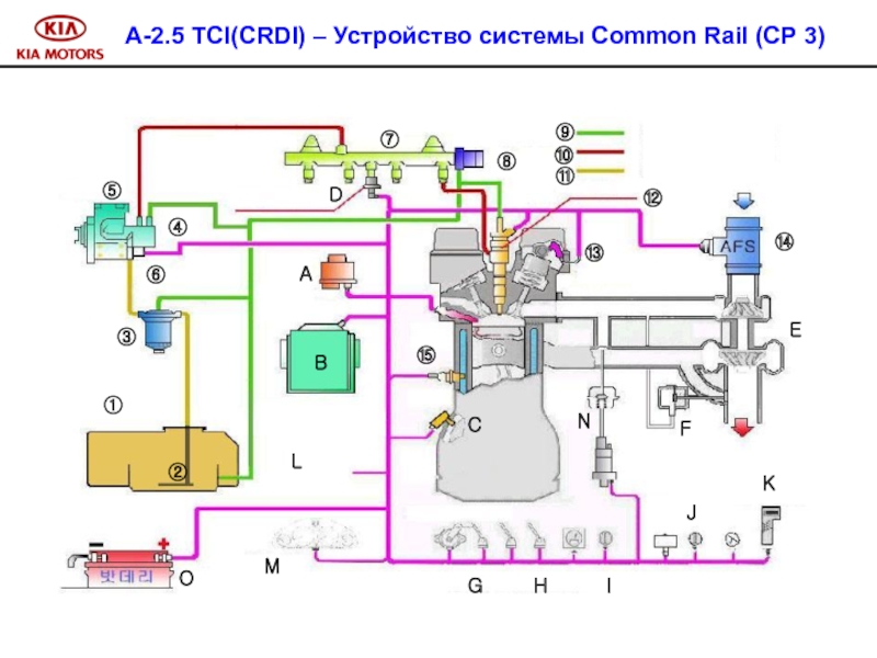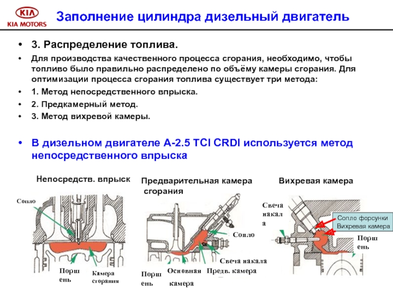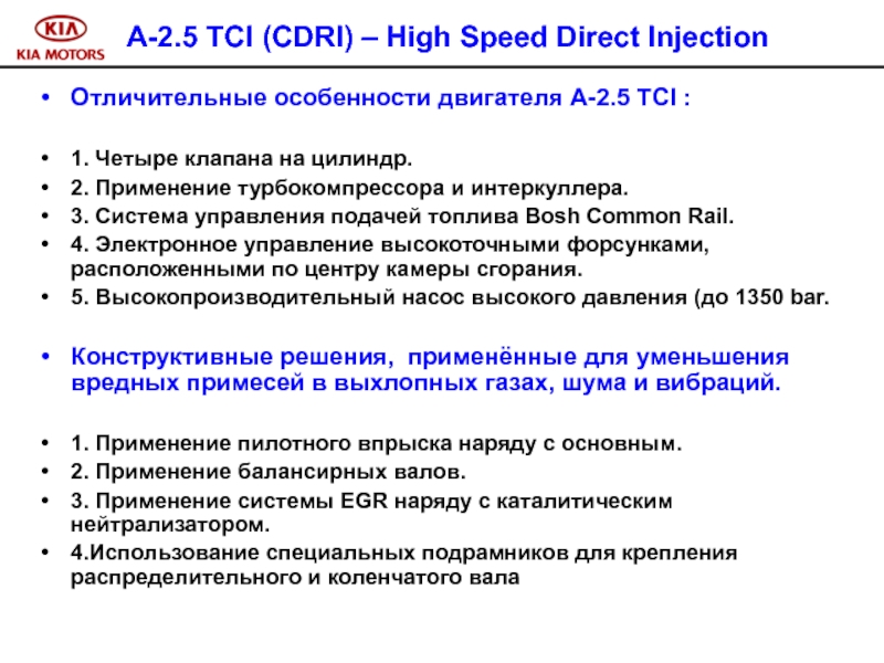 В дизельном двигателе A-2.5 TCI CRDI используется метод непосредственного впрыска