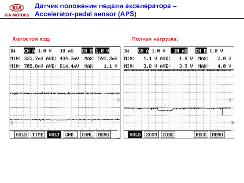 функционирования тормозной системы («ON» или «OFF»). Датчик 1 и датчик 2