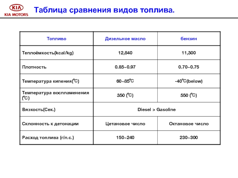 Слайд 2Таблица сравнения видов топлива.