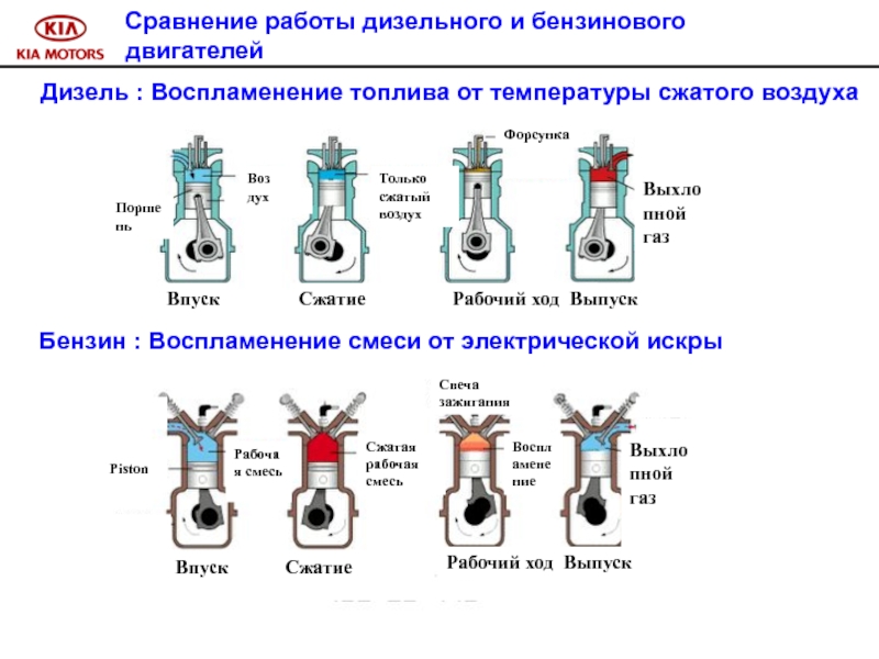 отличается от аналогичного процесса в бензиновом. В дизельном двигателе воспламенение