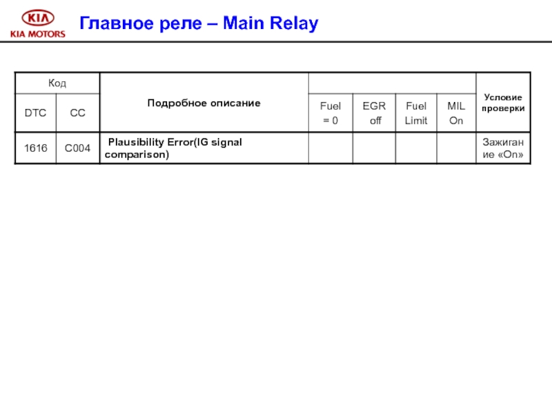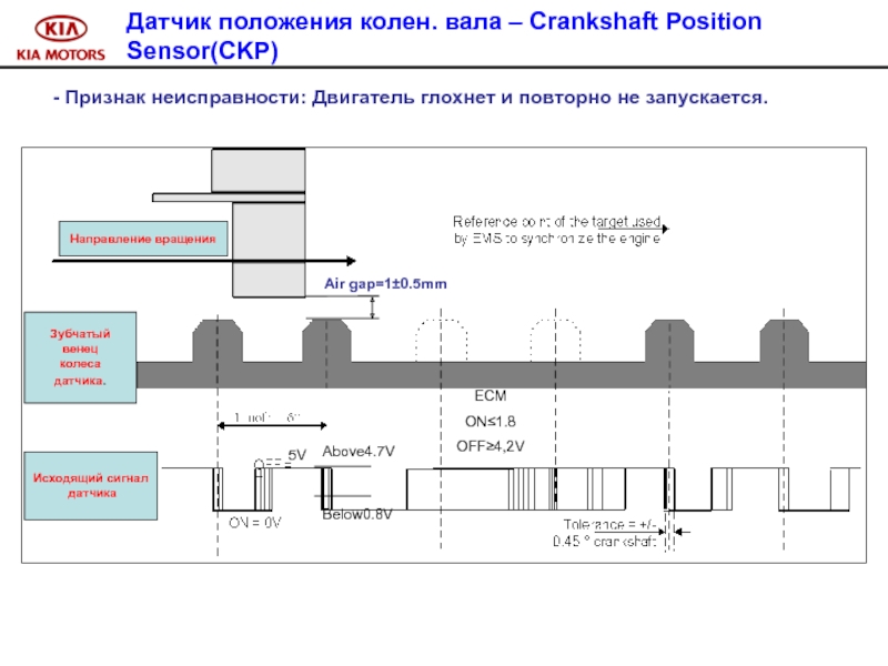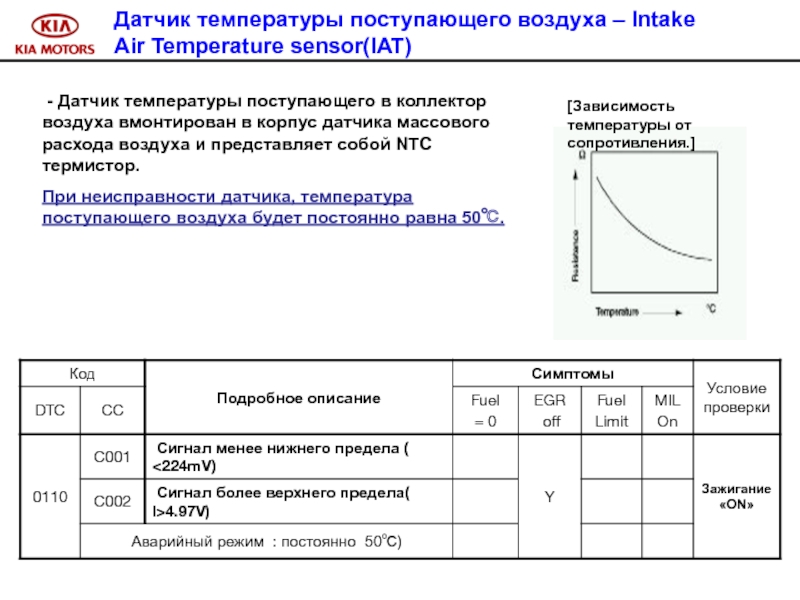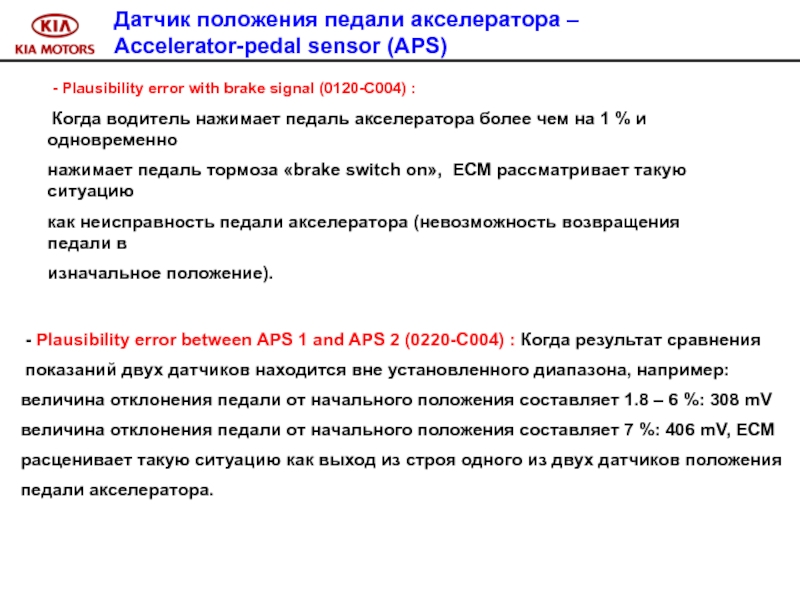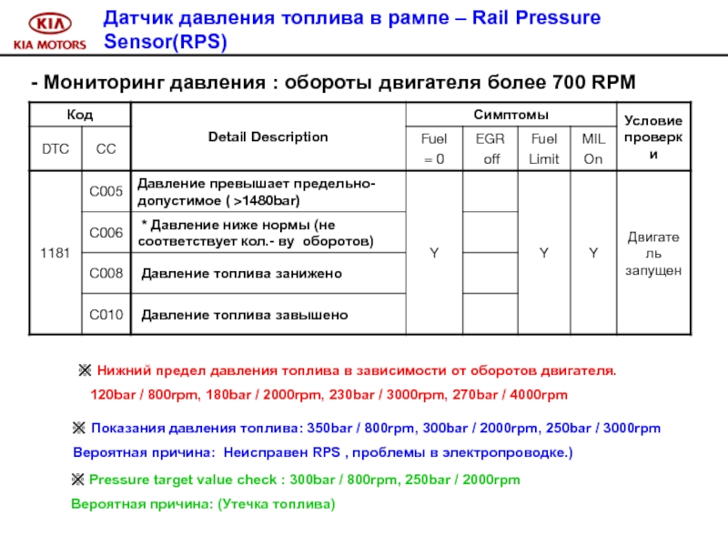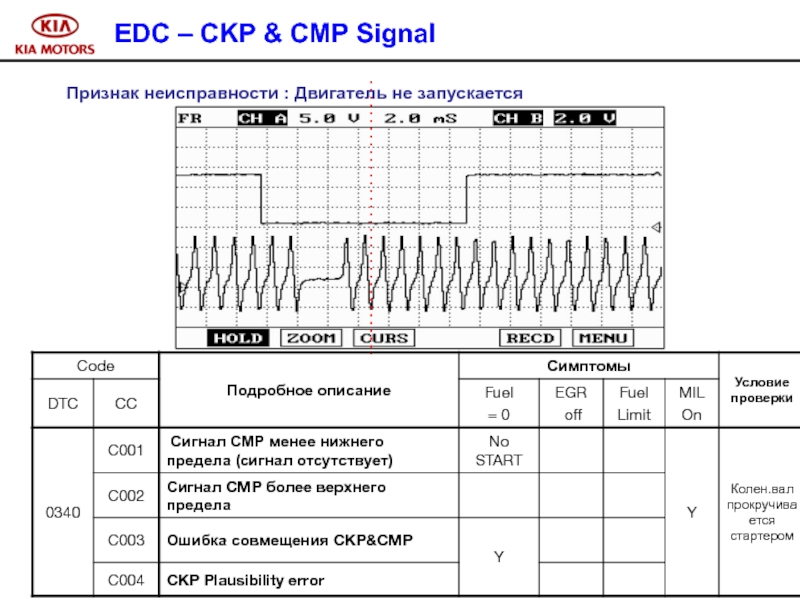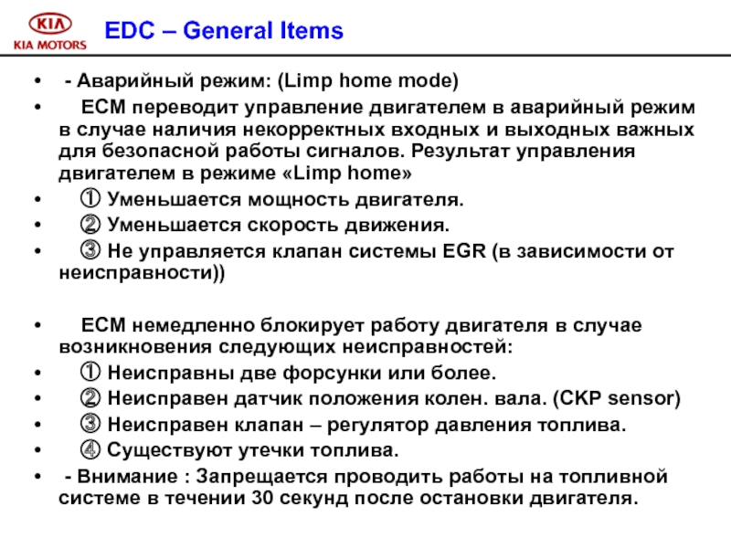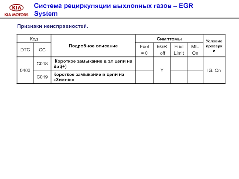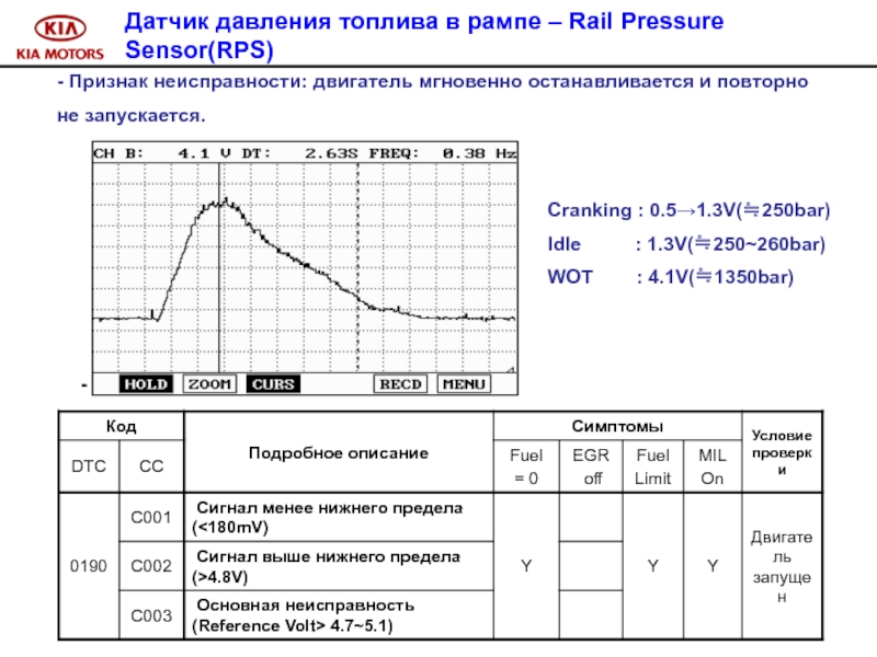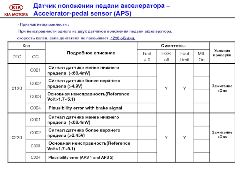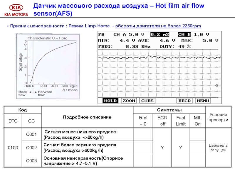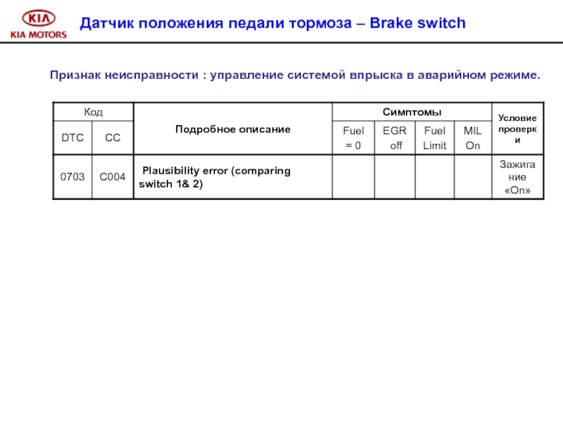 Слайд 100 Признак неисправности : управление системой впрыска в аварийном режиме.