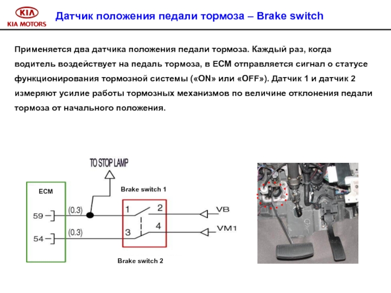Слайд 99Датчик положения педали тормоза – Brake switch