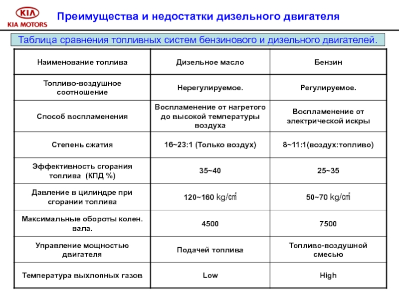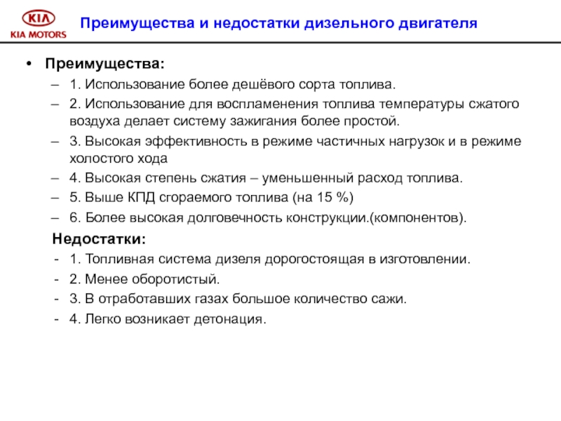Слайд 14Преимущества и недостатки дизельного двигателя