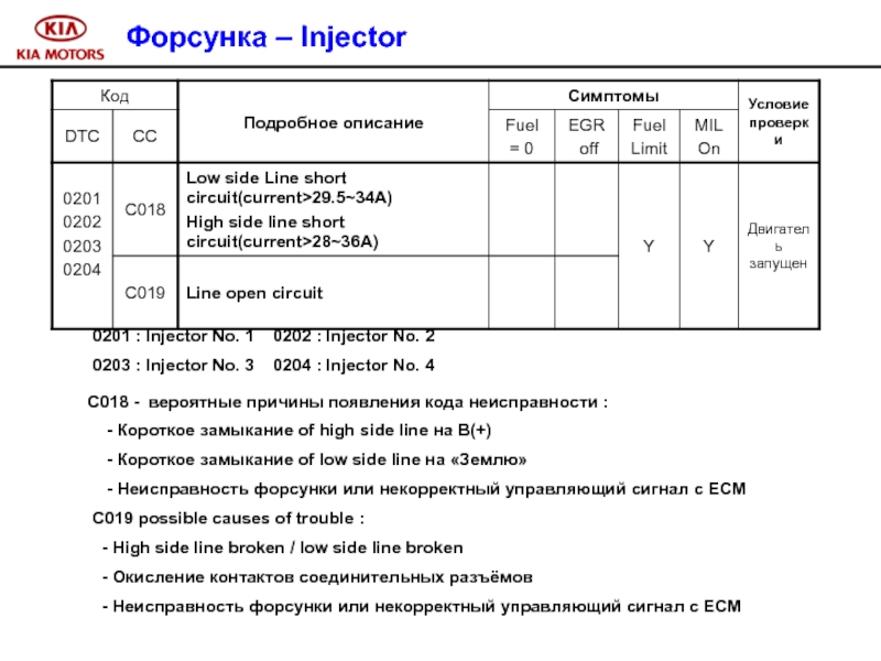 Слайд 104 0201 : Injector No. 1 0202 : Injector
