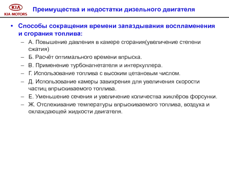 Слайд 11Способы сокращения времени запаздывания воспламенения и сгорания топлива: