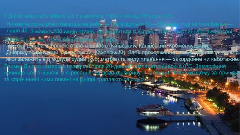 Взимку Дніпро замерзає зазвичай після 20-денної температури нижче 0°С. Замерзання починається з півночі, а скресання льодового покриву — з півдня. Завдяки цьому затори криги та спричинені ними повені на Дніпрі трапляються рідко.