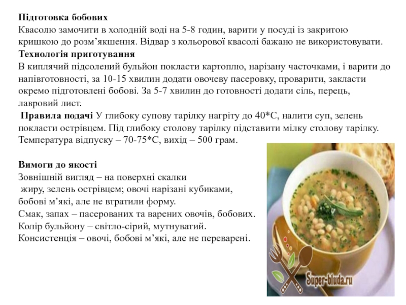 2.1 Технологічна картка “ Юшка картопляна з бобовими”