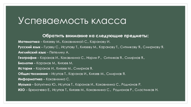 Князеву М., Каранову Т., Ситникову Я., Смирнову Я.
