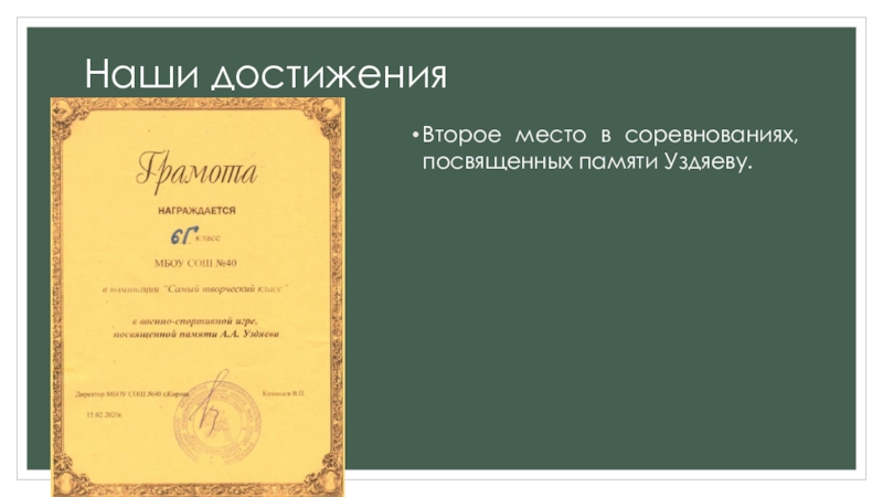 Второе место в соревнованиях, посвященных памяти Уздяеву.
