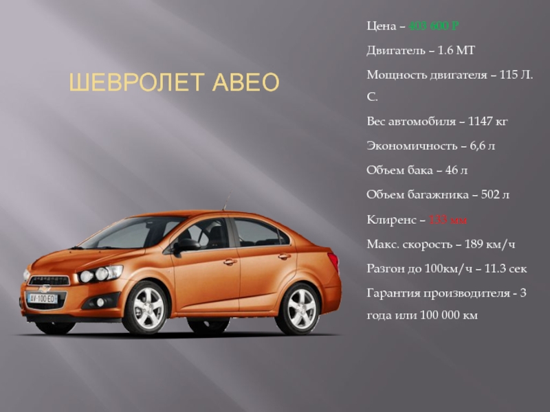 Слайд 6ШЕВРОЛЕТ АВЕО