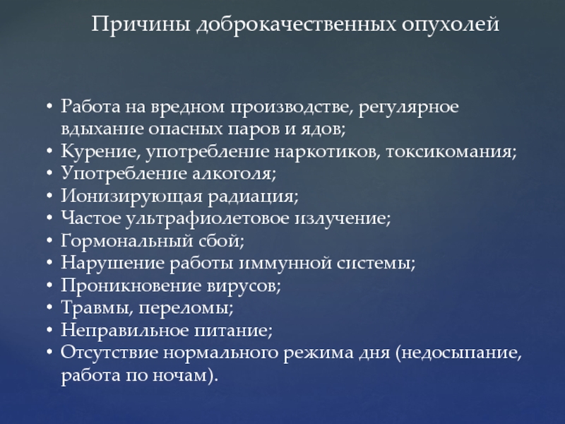 Слайд 5Причины доброкачественных опухолей