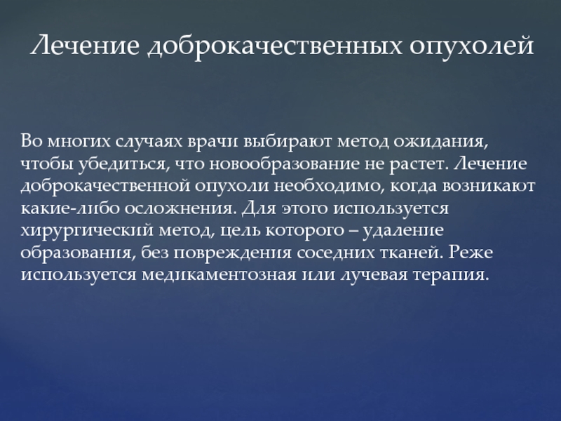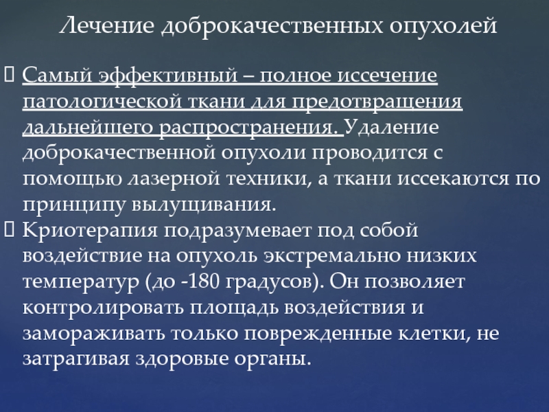 Слайд 40Лечение доброкачественных опухолей