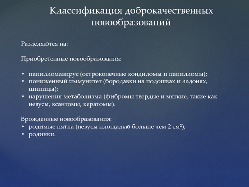 Слайд 7Классификация доброкачественных новообразований