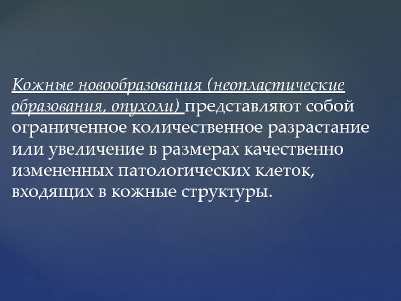Слайд 2Кожные новообразования (неопластические образования, опухоли) представляют собой ограниченное количественное разрастание