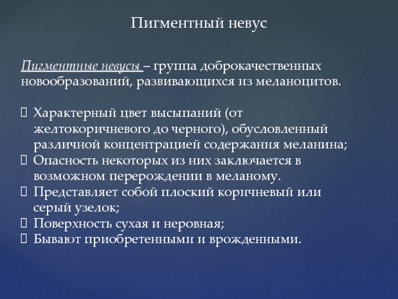Пигментные невусы – группа доброкачественных новообразований, развивающихся из меланоцитов.